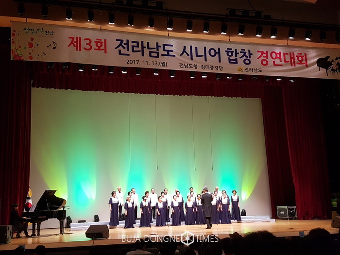| △전남도청 김대중강당에서 열린 '제3회 전라남도 시니어합창 경연대회'에서 담양군 노인복지관 '청죽합창단'이 시니어합창단 25개 팀 중 장려상을 수상했다 |