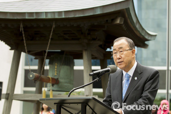 | △ (뉴욕/미국=신화/포커스뉴스) 뉴욕 맨해튼 유엔본부에서 열린 '세계 평화의 날' 행사에서 연설하고 있다. <사진제공=포커스뉴스> |