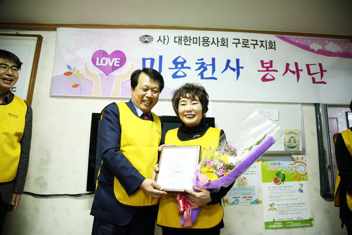위촉패 전달 후 이성 구청장은 대한미용사회 구로구지회 회원으로 구성된 미용천사 봉사단과 함께 궁동경로당 어르신들을 대상으로 이·미용 봉사활동도 실시했다.