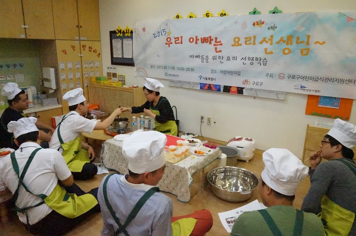 [부자동네타임즈 심귀영 기자] 구로구어린이급식관리지원센터가 관내 영유아 자녀를 둔 아버지 14명을 대상으로 아버지 요리교실을 개최했다.