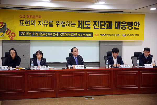 △ 3일 정부가 국무회의를 열어 5인 미만 인터넷언론사 퇴출을 위한 신문법 시행령 개정을 강행한 가운데, 이날 오후 국회에서 정의당 언론개혁기획단(단장 추혜선).한국방송학회 주최로 '표현의 자유를 위협하는 제도 진단과 대응방안' 긴급 현안토론회가 열렸다.© 기자뉴스 |