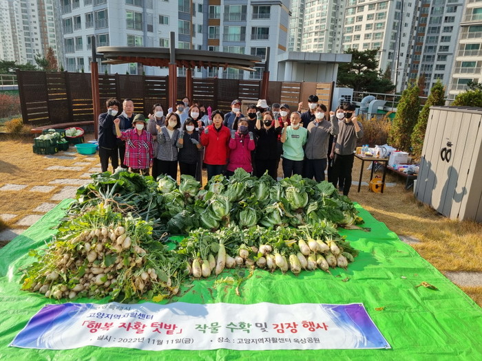[부자동네타임즈 김인수기자] 고양특례시(시장 이동환)가 지난 11일(금) 고양지역자활센터 옥상 텃밭에서 자활참여자들이 직접 재배한 배추, 무를 수확하고 김장행사를 진행했다.