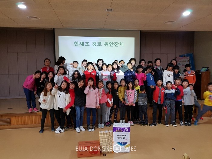 이날 공연에 참여한 한재초교 학생들은 평소에 갈고 닦은 오카리나 연주, 댄스, 합창 등을 할아버지, 할머니 앞에서 뽑내며 기쁨을 드리기도 하고 안마해드리기, 이야기 나누기를 통해 효를 실천했다.