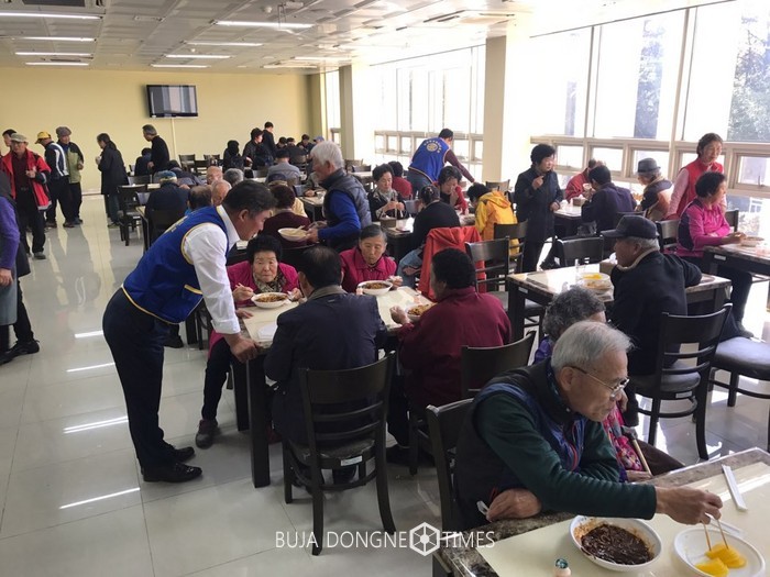 | △공연 후, 복지관 식당에서 진행된 자장면 나눌 행사는 청죽로터리클럽 회원들의 자발적인 참여로 질서유지부터 배식, 음식물 처리 및 뒷정리까지 아낌없는 봉사활동을 실천하여 훈훈함을 더했다 |