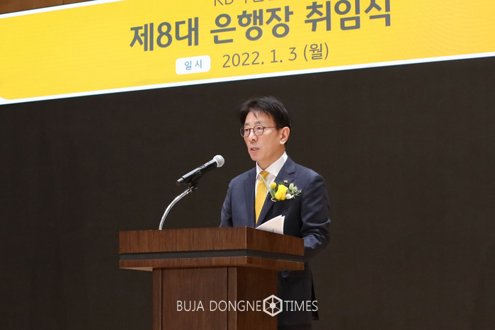 [부자동네타임즈 이현재 기자]KB국민은행은 이재근 KB국민은행장이 취임했다고 밝혔다. 이재근 은행장은 취임식에서 “KB국민은행을 믿고 성원해 주시는 3천 2백만 고객님, 막중한 책임을 맡겨주신 주주님과 이사님, 은행 발전을 위해 최선을 다해주고 계신 임직원에게 감사드린다”며, ‘No.1 금융플랫폼 기업’을 향한 네 가지 핵심 경영방향을 제시했다.