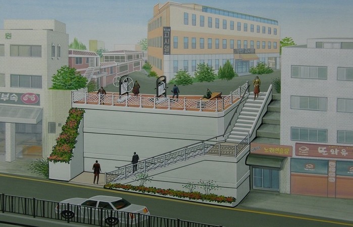 아울러 계단 위쪽의 공간에는 소규모 운동시설과 벤치를 놓아 쉼터로 꾸민다. 원래는 공터로 크기가 작아 활용가치가 낮은 곳이었지만 편의시설을 배치해 활용도를 높인 것이다.