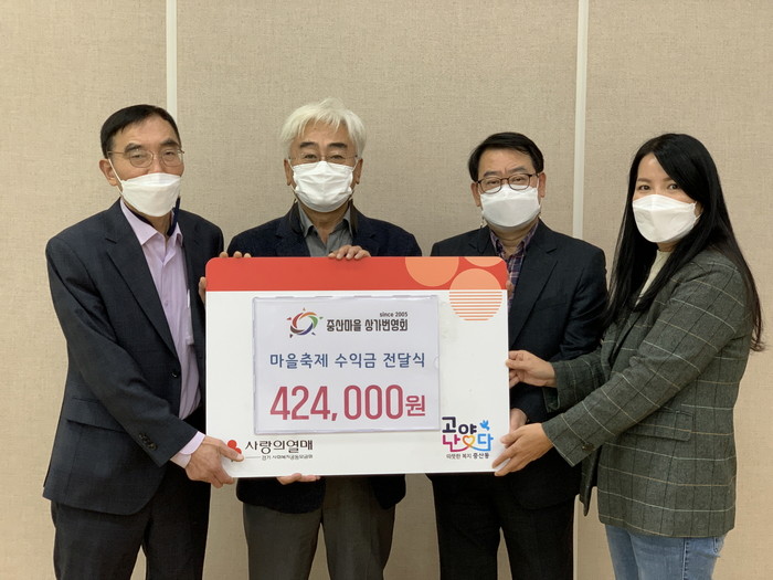 [부자동네타임즈 김인수기자] 고양특례시 일산동구 중산1동 주민자치회(회장 유광석)는 지난 11일 중산1동 주민자치회 11월 정기회의에 앞서 마을축제 수익금을 기부하는 선행을 베풀었다.