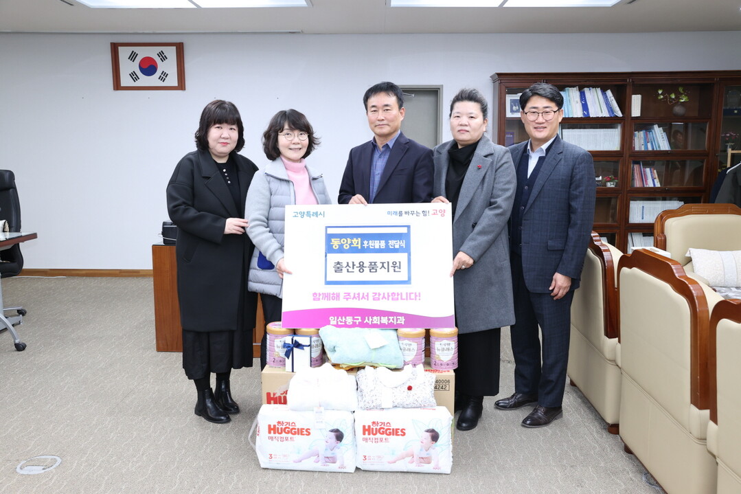 [부자동네타임즈 = 김인수 기자] 고양특례시 일산동구는 지난 8월부터 12월까지 5개월간‘고양 난다(복지 나눔 1촌 맺기)’사업의 일환으로 장항동 동양메이저 타워 거주자 및 사업자로 구성된 봉사 단체 동양회(회장 정은실)로부터 저소득층 임시 신생아를 위한 유아용품(분유, 기저귀, 내복 등)을 기탁 받았다고 8일 밝혔다.