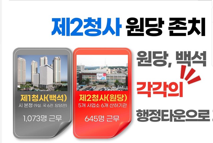 [사진설명] 원당 시청 건립 예정지에 다시 기획되는 원당지역재창조 프로젝트의 청사진, 이의 실현은 기업 유치로 청사 건립가 나온다는 시측의 주장이다.