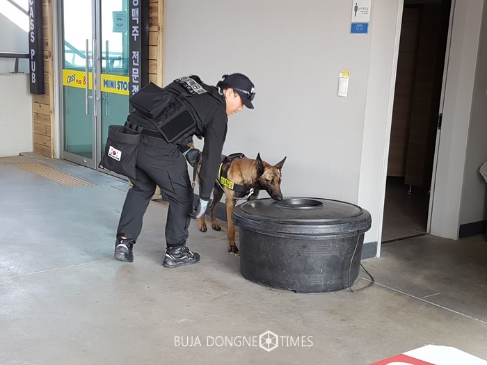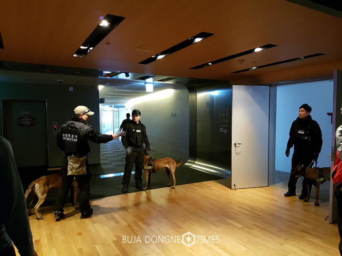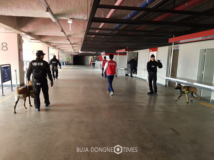 | △북부경찰서는 기아챔피언스필드에서 프로야구 개막경기가 안전하게 개최될 수 있도록 경찰 특공대 폭발물 탐지팀, 시설관계자들과 합동으로 경기장 내 테러취약개소에 대한 점검을 실시하였다 |