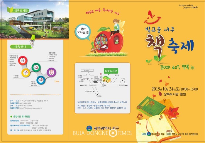 [광주=부자동네타임즈 손권일 기자] 광주시 서구(구청장 임우진)가 오는 24일 독서 생활화 및 도서관에 대한 지역민의 관심을 높이기 위해 '제1회 빛고을 서구 책 축제'를 개최한다.