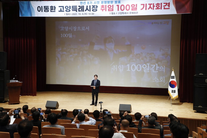 이동환 고양특례시장은 “지난 100일 동안 새로운 고양을 설계하고 기초를 다지기 위해 숨 가쁘게 달려왔다”며 “공정과 상식, 혁신과 화합을 바탕으로 시민소통, 안전·안정·안심의 3안(安)행정, 맞춤형 합리적 복지, 사통팔달 교통허브, 첨단산업과 문화가 융합된 도시를 만들어가겠다”고 전했다.