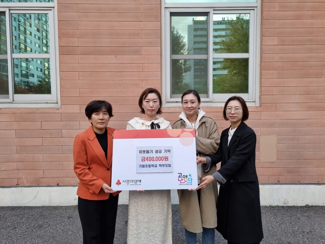 [부자동네타임즈 = 김인수 기자] 고양특례시 행신3동 행정복지센터는 지난 27일 관내 가람초등학교 학부모회로부터 우리 주변의 어려운 이웃을 위해 써달라며 이웃돕기 성금과 후원물품을 기탁 받았다고 밝혔다.