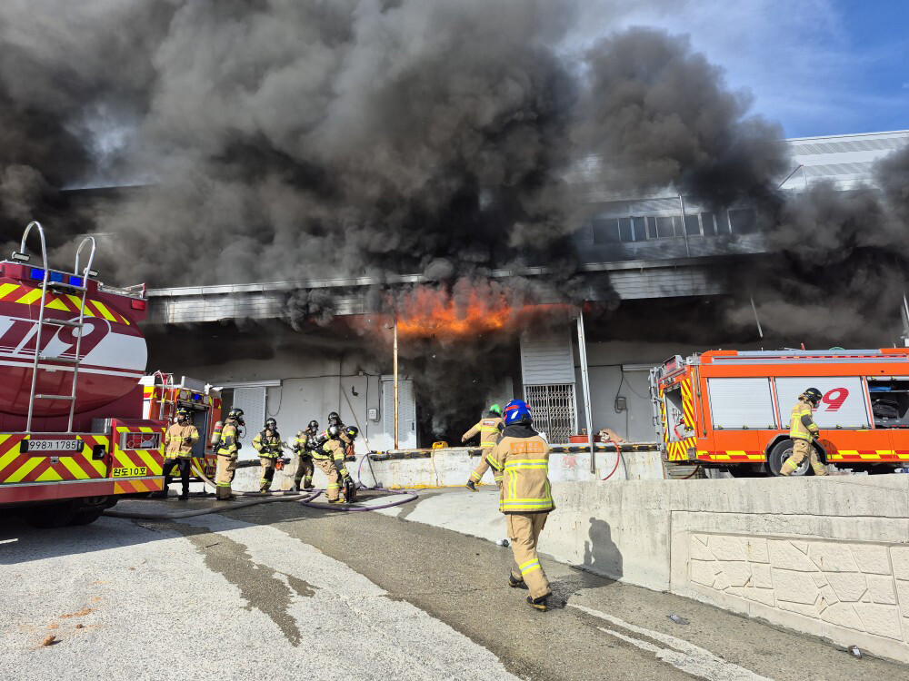 완도 수산물 냉동창고서 치솟는 불길