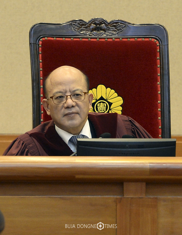 박한철 헌법재판소장이 23일 오전 서울 종로구 헌법재판소 대심판정에서 열린 '박근혜 대통령 탄핵심판 사건 8차 변론'에 참석해 청구인, 피청구인 변호사 출석 여부를 물으며 생각에 잠겨 있다. 2017.01.23.