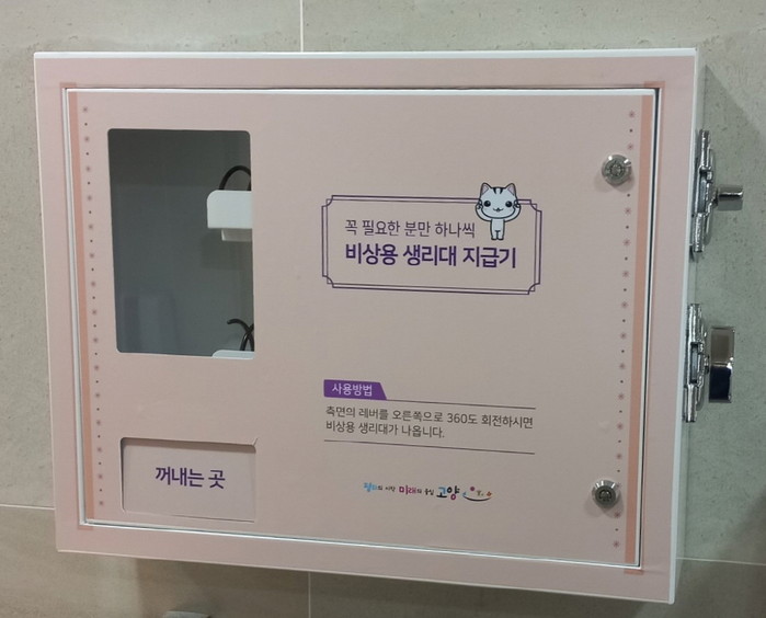 [부자동네타임즈 김인수기자] 고양시가 도서관, 공원 화장실 등에 설치된 ‘비상용 생리대 무료 지급기’를 16개소로 확대 운영한다고 22일 밝혔다.