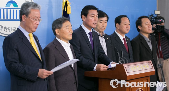 (서울=포커스뉴스) 여야의 선거구 획정 논의가 결렬되어 법정시한 내 처리가 무산된 13일 오전 서울 여의도 국회 정론관에서 선거구 축소에 반대하는 농어촌·지방 의원모임 여야 의원들이 입장발표 기자회견을 하고 있다.