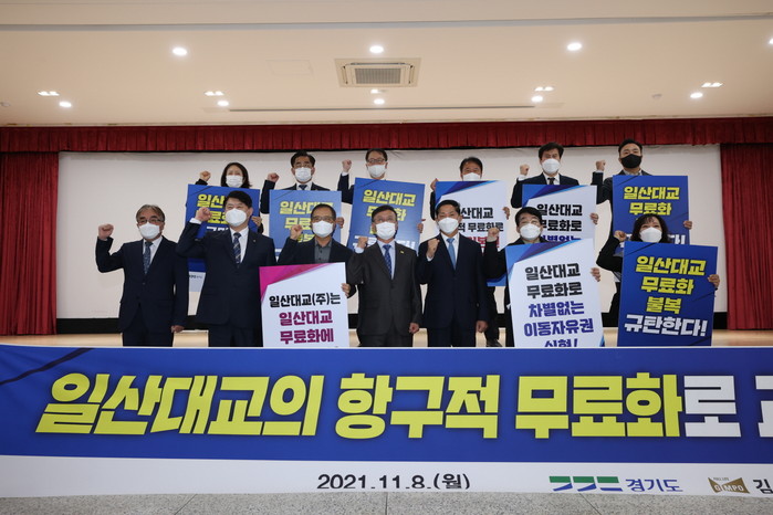 [부자동네타임즈 김인수기자] 8일 경기도와 고양시, 김포시, 파주시는 일산대교 통행료 무료화에 반대 움직임을 보이는 일산대교(주)측에 통행료 무료화 공익처분을 수용할 것을 공동으로 촉구했다.