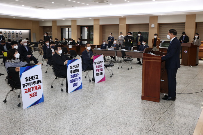 이재준 고양시장은 “일산대교(주)의 대주주인 국민연금공단은 고금리 이자율을 적용하는 등 정당하지 못한 수익구조로 일산대교를 통해 2,000억원이 넘는 이익을 챙겨갔다”며 “일산대교(주)는 207만 고양·김포·파주 경기 서북권 시민의 교통기본권 보장과 지역차별 해소를 위해 일산대교 통행료 무료화 공익처분을 수용해야한다”고 호소했다.