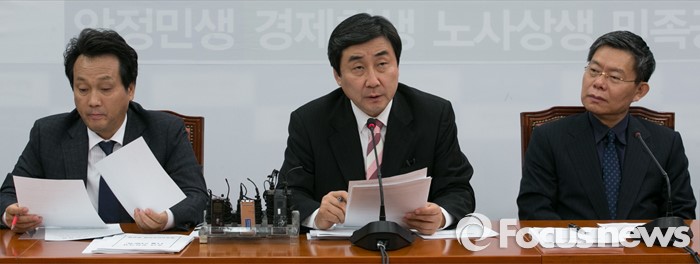 | △ 이종걸 새정치민주연합 원내대표가 24일 오전 서울 여의도 국회에서 열린 원내대책회의에 참석해 모두발언을 하고 있다. <사진제공=포커스뉴스> |