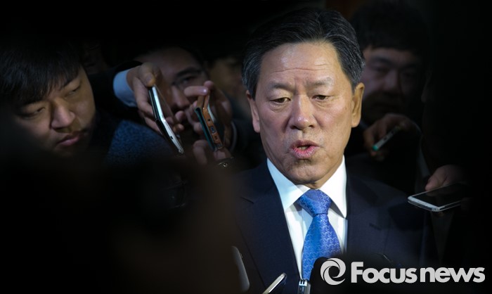 | △ 주승용 새정치민주연합 최고위원이 8일 오전 서울 여의도 국회 정론관에서 최고위원직 사퇴 기자회견을 마친 뒤 취재진 질문에 답하고 있다. <사진제공=포커스뉴스> |