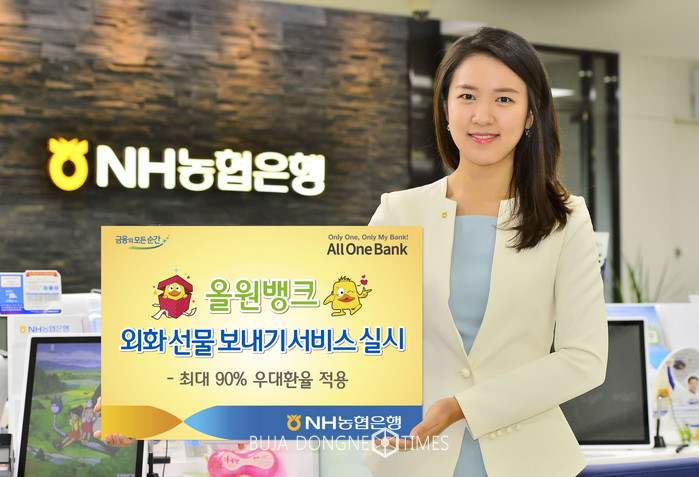 [부자동네타임즈 이현재 기자]NH농협은행(은행장 이경섭)은 4일부터 모바일플랫폼인 올원뱅크 앱을 통해 부모님이나 친구 등에게 외화를 선물할 수 있는 「올원뱅크 외화 선물 보내기」 서비스를 실시한다고 6일 밝혔다.