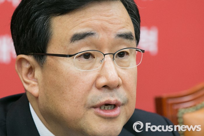 | △ 지난달 27일 오전 서울 여의도 국회에서 열린 새누리당 원내대책회의에 김정훈 정책위의장이 참석해 발언하며 웃고 있다. <사진제공=포커스뉴스> |