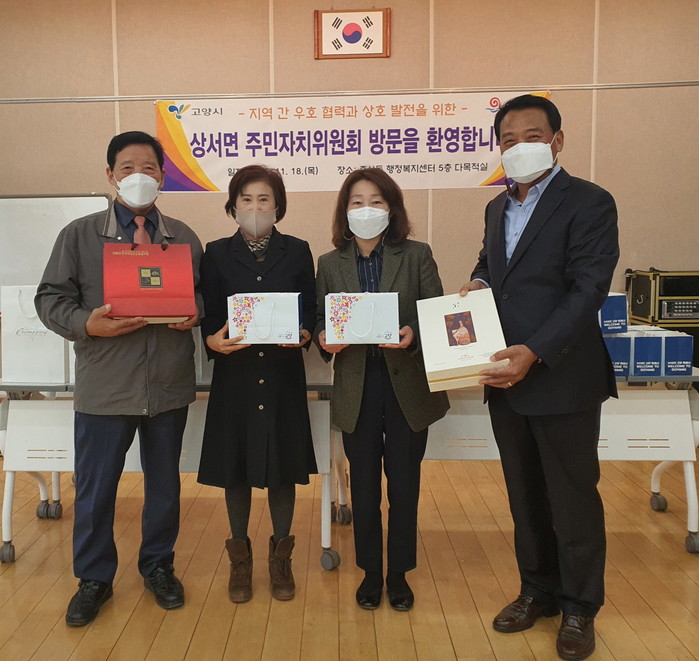 환영회에는 주민자치 임원진 및 위원, 중산동장, 상서면장 등이 참석했으며 주민자치 위원 간 지역 특산물을 교환했다.