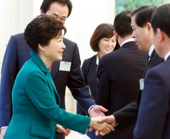 | △ 박근혜 대통령과 서울시의회 박래학 의장이 간담회에 앞서 악수를 하고있다. |