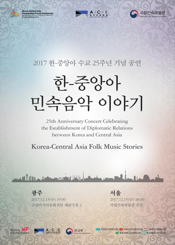 [광주=부자동네타임즈 손권일 기자]국립아시아문화전당(전당장 직무대리 방선규, 이하 ACC)과 한국국제교류재단(이사장 이시형, 이하 KF)은 공동으로 한-중앙아 수교 25주년 기념 공연 ‘한-중앙아 민속음악 이야기’를 12월 13일(수)에 ACC 예술극장 극장2에서 개최한다.