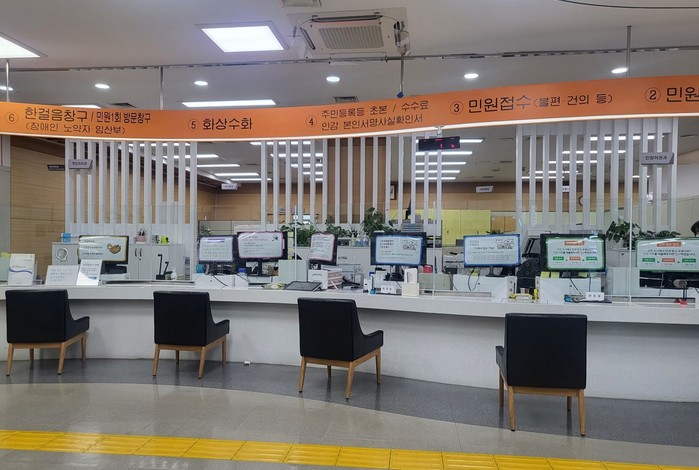 [사진설명] 강화유리 가림막이 설치된 민원실.