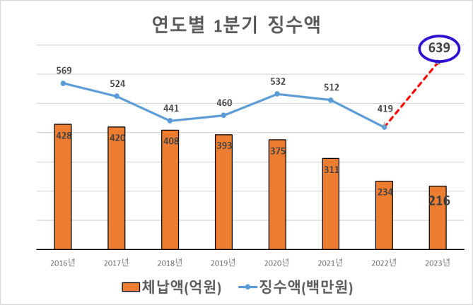 한편 생계형 체납자에게는 완납까지 이를 수 있도록 섬세한 상담 및 꾸준한 납부독려를 이어가는 등, 체납유형에 따른 맞춤형 체납처분으로 팀 신설 이래 1분기 징수실적을 최고치로 끌어올렸다.