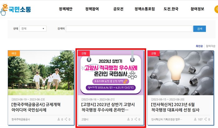 사전 온라인 국민심사는 ‘온국민소통’ 누리집의 국민심사 코너에서 6월 21일까지 진행한다.
