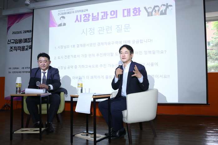 [사진설명] 이동환 고양시장이 신규 공직자와 소통하는 시간을 갖고 있다.