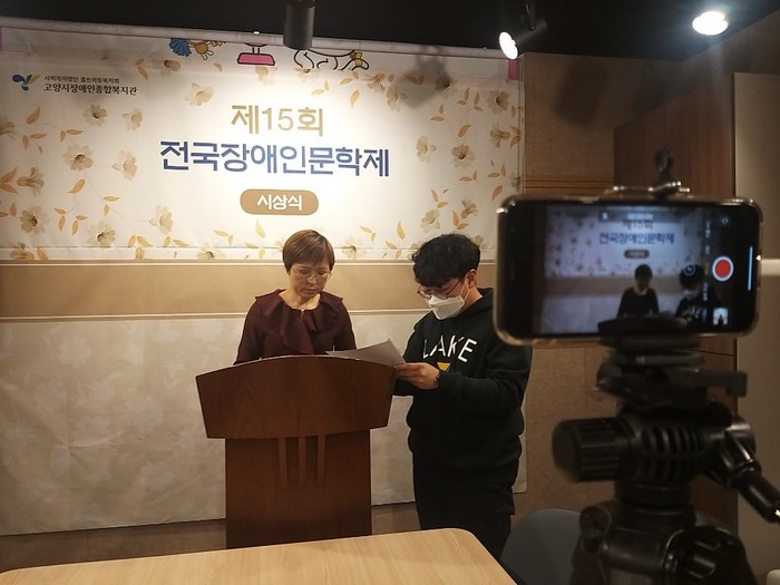 ‘전국장애인문학제’ 시상식은 매년 고양시장애인종합복지관에서 열렸지만 올해는 코로나19 확산 방지를 위해 실시간 유튜브 송출 방식으로 비대면 온라인으로 진행됐다.