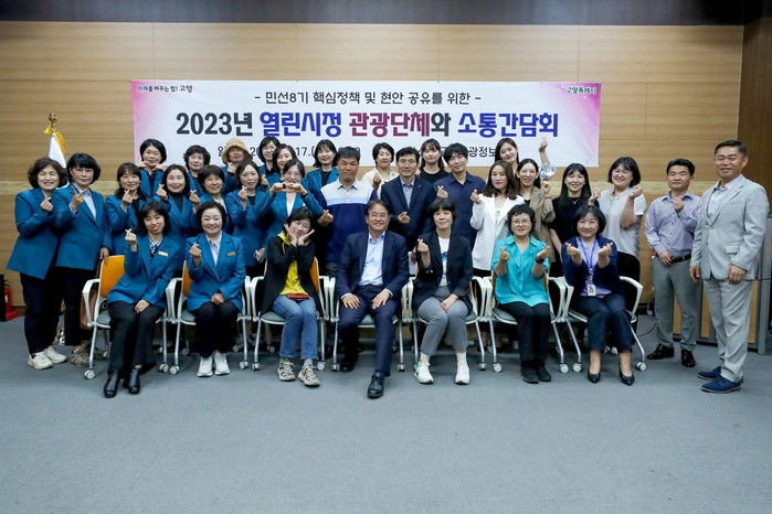이날 고양시 문화관광해설사회, 고양시 브랜드 관광기념품 협동조합, 고양시 의료관광협회 회원 등 관계자 40여명이 참석해 민선8기 핵심정책 및 현안을 듣고 현장의 목소리를 전달했다.
