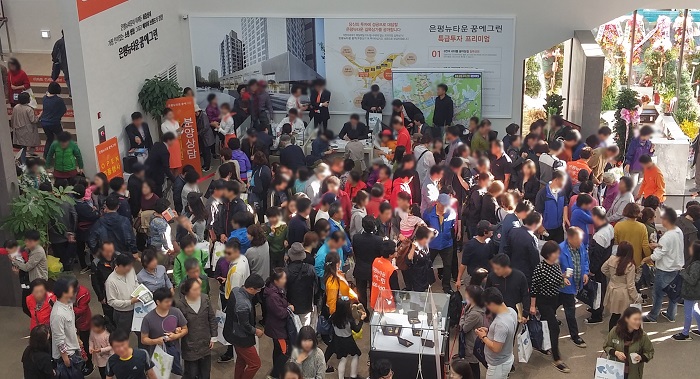 | △ 한화건설이 이달 7일과 8일 서울 은평뉴타운 상업4블록에 들어서는 '은평뉴타운 꿈에그린' 고객감사 이벤트를 진행한다. 사진은 한화건설 모델하우스에 운집한 고객 모습<사진제공=한화건설> |