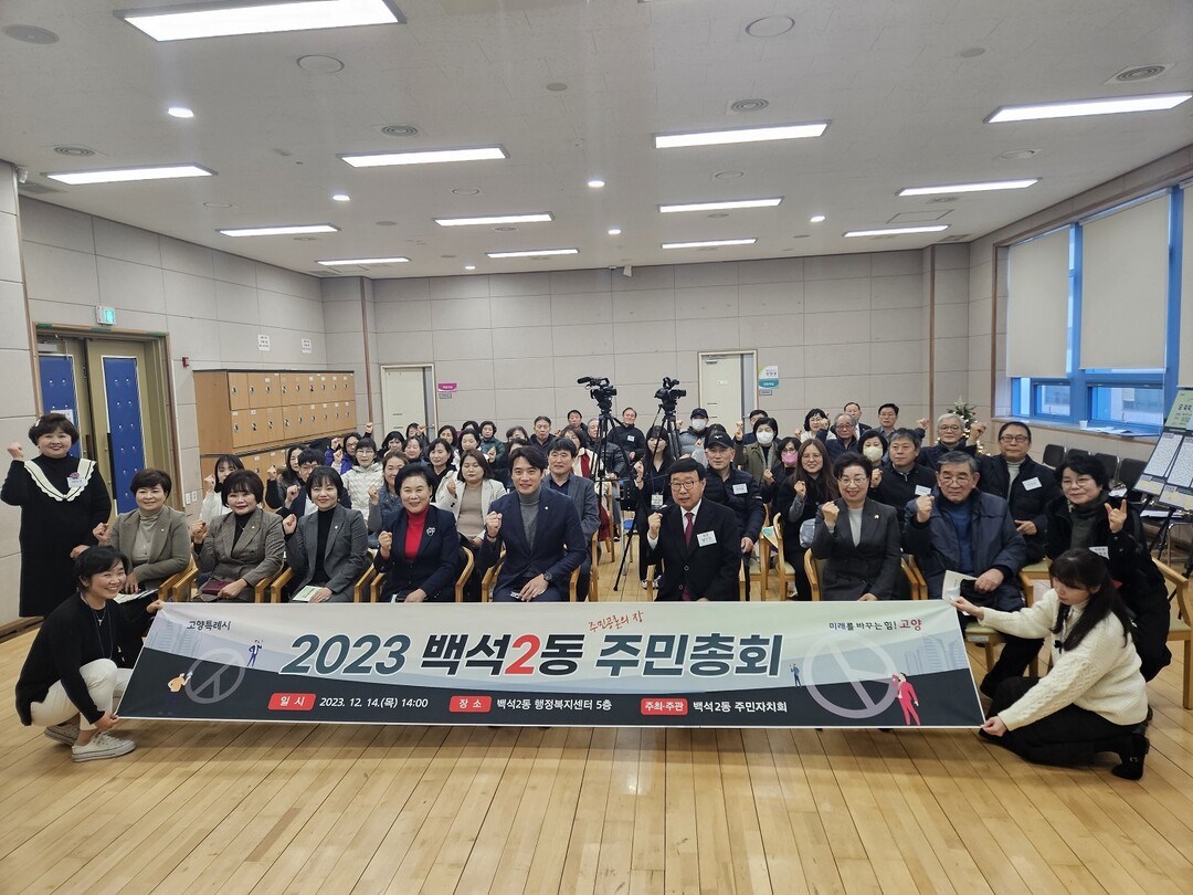 오후 2시에 진행된 총회는 100여 명의 주민과 내빈이 참석한 가운데 백석2동 행정복지센터 문화교실에서 진행됐다.
