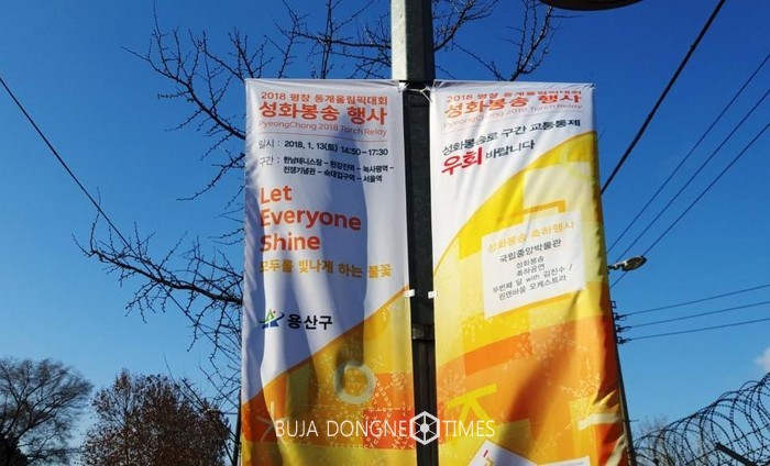 구는 앞서 봉송로 주변 지정 게시대와 봉송구간 교차로 등에 교통통제 안내 현수막(26개소)과 입간판(25곳), 가로등 배너(335조)를 설치했다. 원활한 성화봉송로를 확보하기 위해서다.