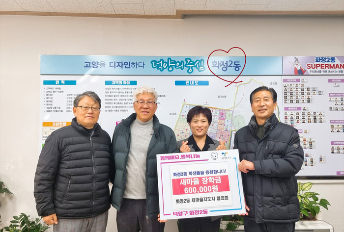 김현정 화정2동장은 “따뜻한 화정2동이 될 수 있도록 항상 힘을 주셔서 감사하다. 기탁한 장학금은 한부모 가정 학생들에게 전달해 꿈과 희망을 키울 수 있는 디딤돌로 쓰일 수 있도록 하겠다.”라고 말했다.