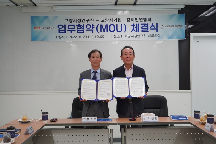 [부자동네타임즈 김인수기자] 고양시정연구원은(원장 정원호)은 21일 오전 고양시정연구원 대회의실에서 고양시기업·경제인연합회와 상호업무협약을 체결하고, 연구원과 데이터 공유· 연구사업· 네트워크 역량강화 등 상호협력을 확대해 나가기로 합의했다.