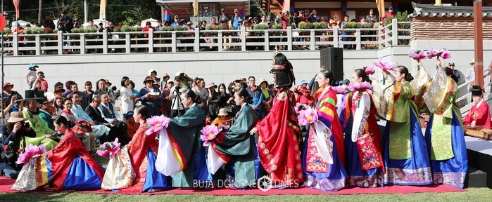 | △장 교육감은 광주 시민들과 윤장현 광주광역시장, 송기석 국회의원, 조세철 시의원 등 내·외빈께 개막식 인사말을 전환 후 궁중음악, 궁중혼례 등 이날 야외마당에서 펼쳐진 다양한 공연과 함께 했다 |