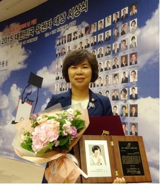 | △ 서울시의회 박양숙 의원이 수상후 기념촬영을 하고있다. |