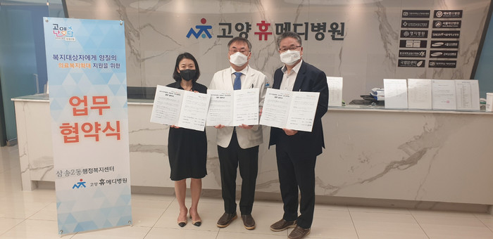 [부자동네타임즈 김인수기자] 고양시 삼송2동행정복지센터(동장 양재관)는 지난 12일, 삼송2동 지역사회보장협의체, 고양휴메디병원과 지역 내 보건복지 문제해결 및 지역사회 안전망 구축을 위한 업무협약을 체결했다.