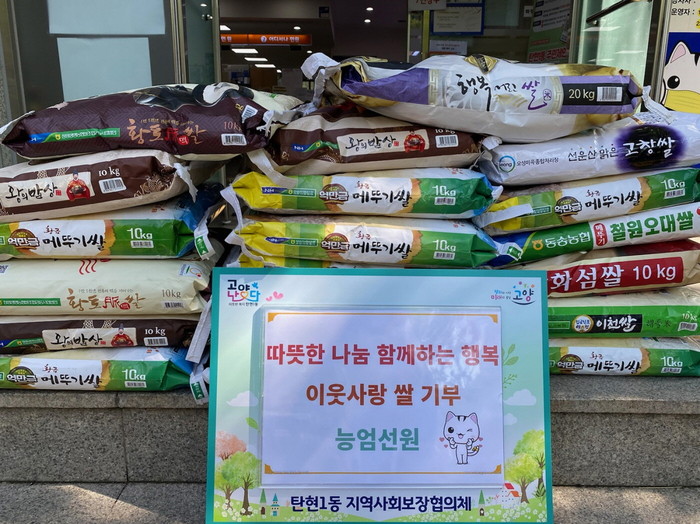 [부자동네타임즈 김인수기자] 고양시 일산서구 탄현1동 행정복지센터(동장 박상원)는 지난 16일 능엄선원으로부터 이웃을 위한 나눔으로 쌀 10kg 20포를 전달받았다고 밝혔다.