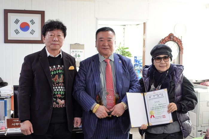 [사진 설명] 좌측부터 윤천금회장, 김용식 명예 부회장, 가수 방주연 / 가수협회 제공.
