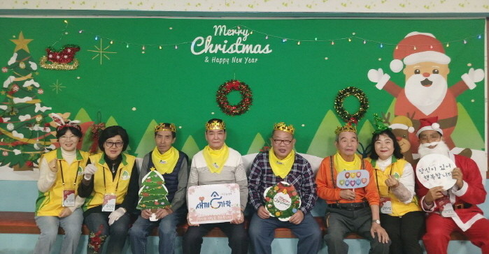 | ▲ 지난 11일 신천지자원봉사단 부천지부 봉사단원이 크리스마스 포토존에서 장애 어르신들과 사진을 찍고 있다. [사진 제공 = 신천지자원봉사단 부천지부] |