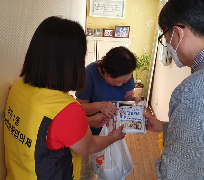 마두1동 지정기탁금 특화사업인“구급상비약품 지원 사업”은 지난해에 이어 2년 째 진행 중으로 저소득 노인 가구에 관절 및 한방파스를 지원하여 고령으로 몸이 불편하신 어르신들의 건강유지에 도움을 드리고 지역사회보장 협의체 위원들의 가정방문과 안부확인을 통해 사회적 돌봄을 제공하고자 진행되었다.