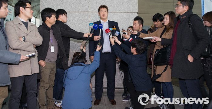(인천공항=포커스뉴스) 이대호가 메이저리그 윈터미팅 참석을 위해 7일 오후 인천국제공항을 통해 미국으로 출국하기에 앞서 취재진의 질문에 답변을 하고 있다.
