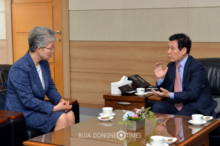 양계화 駐센다이 총영사가 21일 광주광역시청 3층 접견실에서 윤장현 시장을 예방하고 자매도시인 광주시와 센다이시의 교류 활성화 방안을 협의했다.